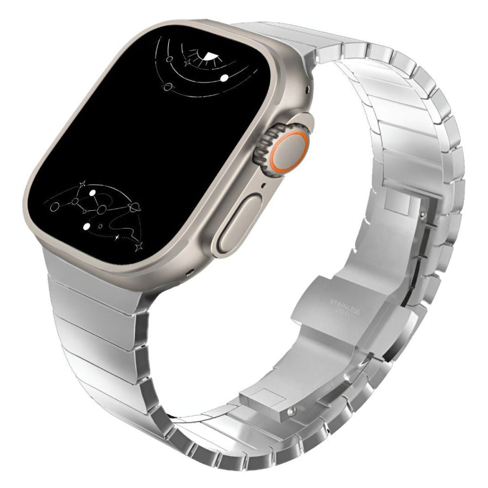 Das Slick Apple Watch Stahlarmband besteht aus hochwertiger 316L-Edelstahllegierung und verleiht Ihrer Apple Watch einen stilvollen und traditionellen Look. Mit seinem feinen Schliff und gebürsteten Finish verleiht das Armband Ihrer Uhr einen edlen Touch und ist eine ausgezeichnete Wahl für geschäftliche oder formelle Anlässe.