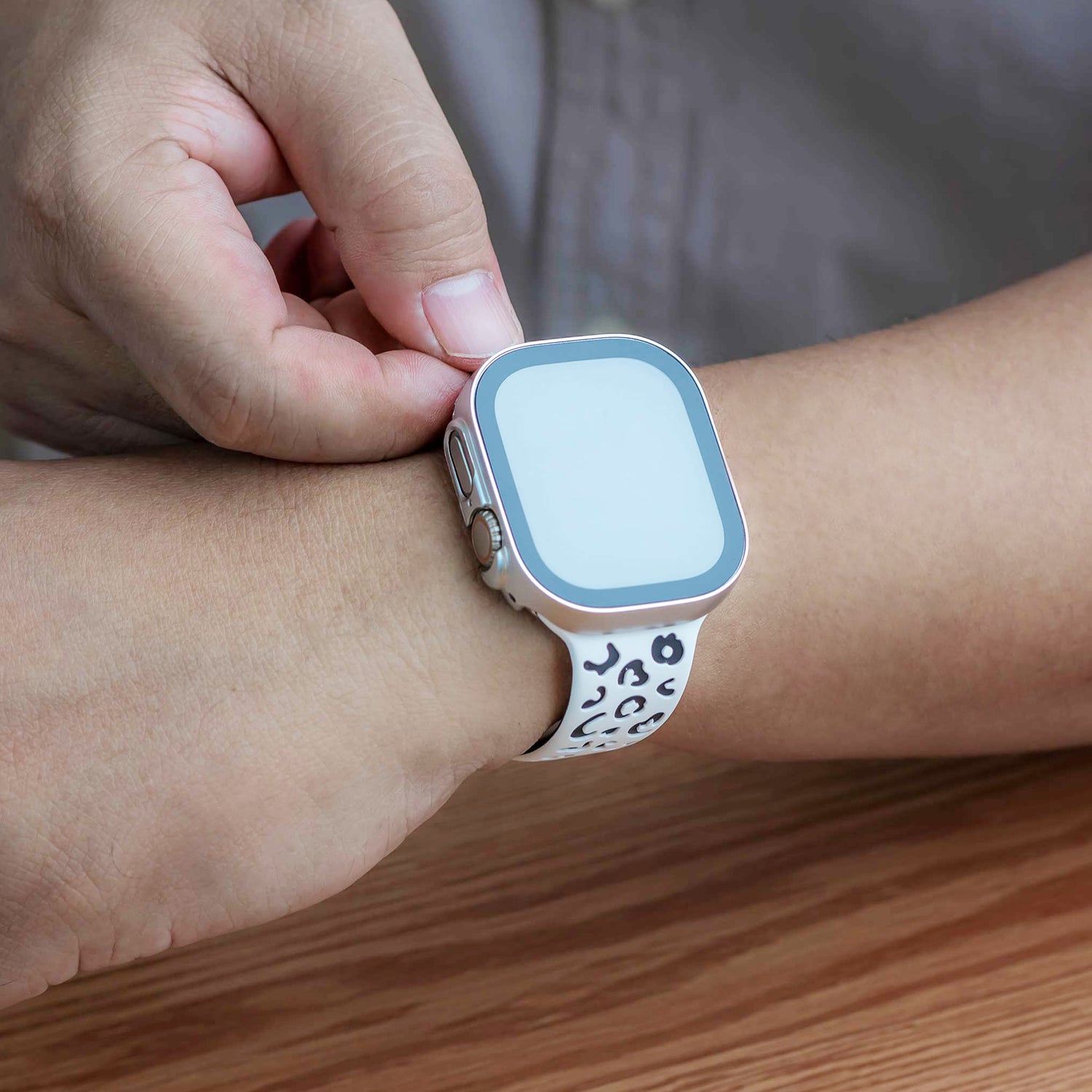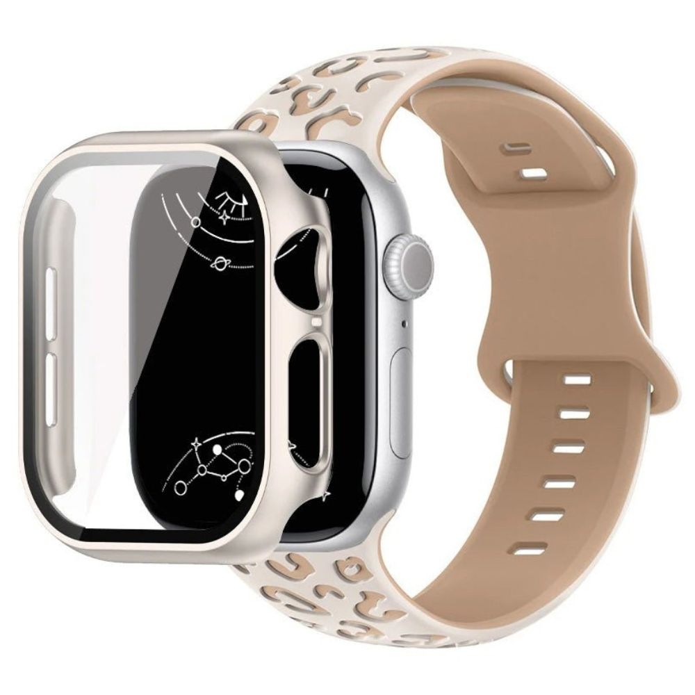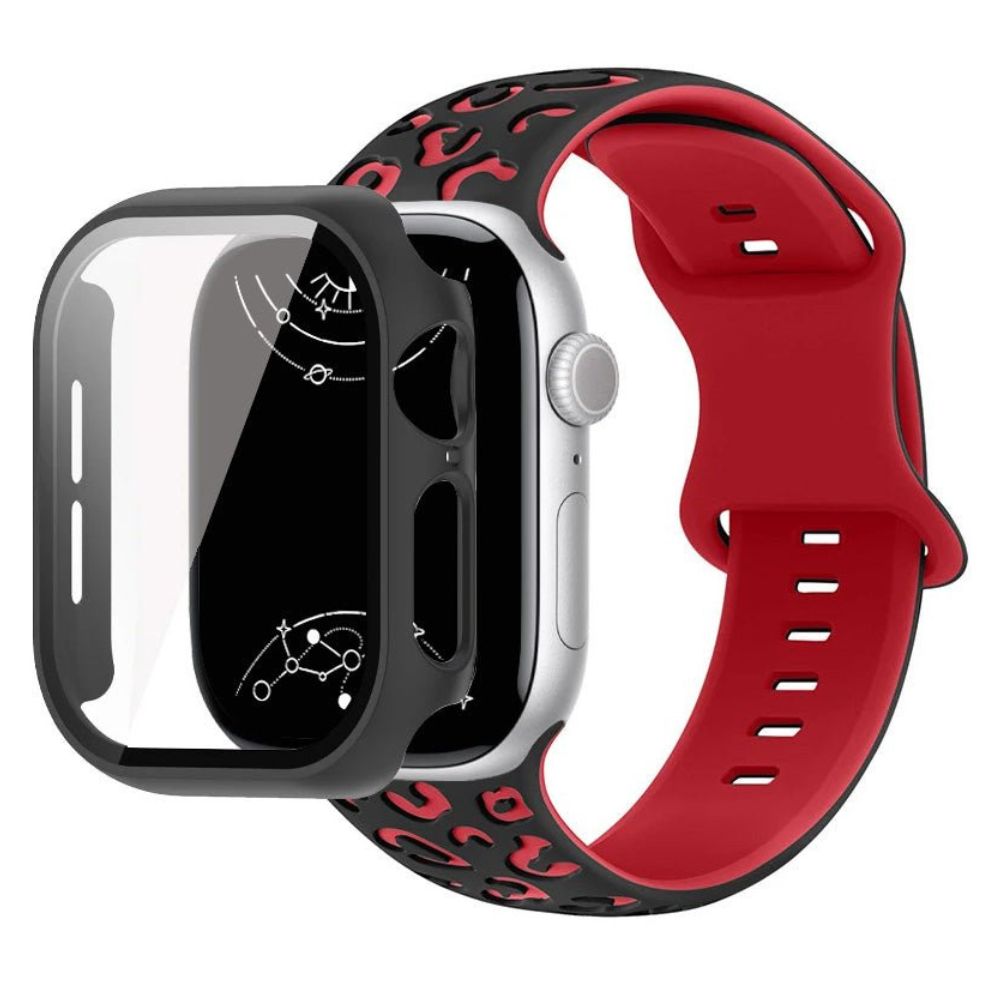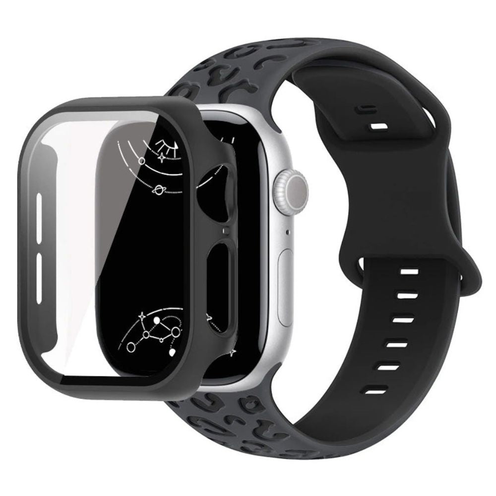 - 2-in-1-Funktionalität kombiniert ein robustes Silikonarmband mit Leoparden-Gravur und einem schützenden Glasgehäuse für umfassenden Schutz