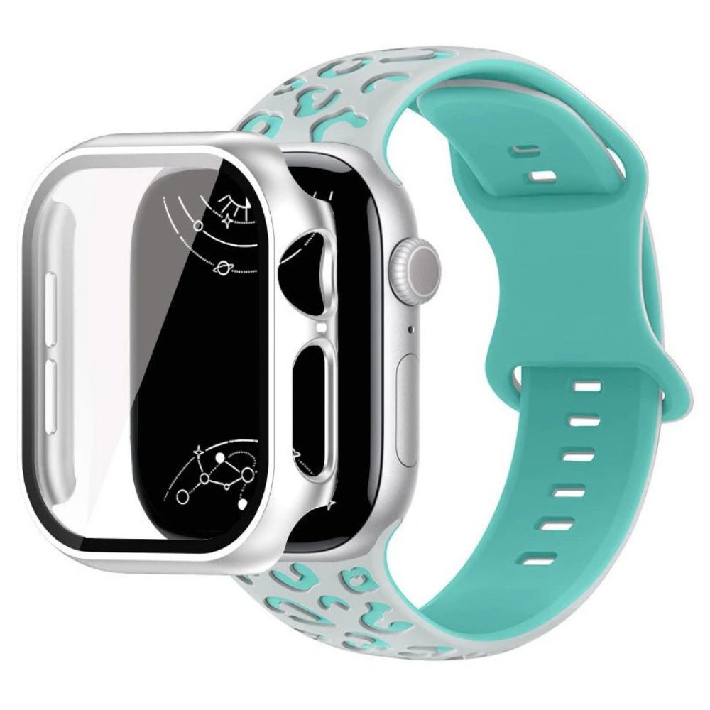 Entfessle deine wilde Seite mit dem Aureus Leopard-Engrave Silikonarmband mit Glasgehäuse – dem ultimativen Fashion-Accessoire für deine Apple Watch. Dieses 2-in-1-Set kombiniert ein graviertes Leopardenmuster-Silikonarmband mit einem glasklaren Schutzgehäuse für Rundum-Schutz.
