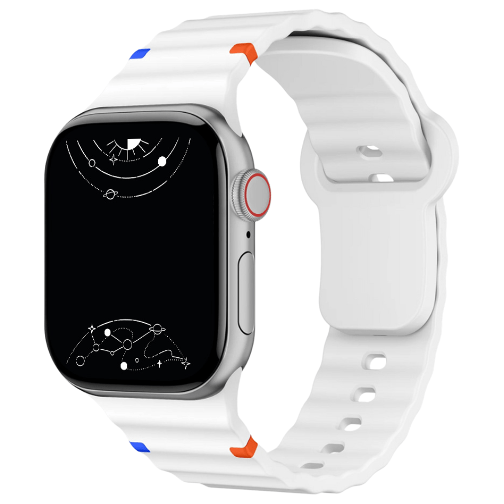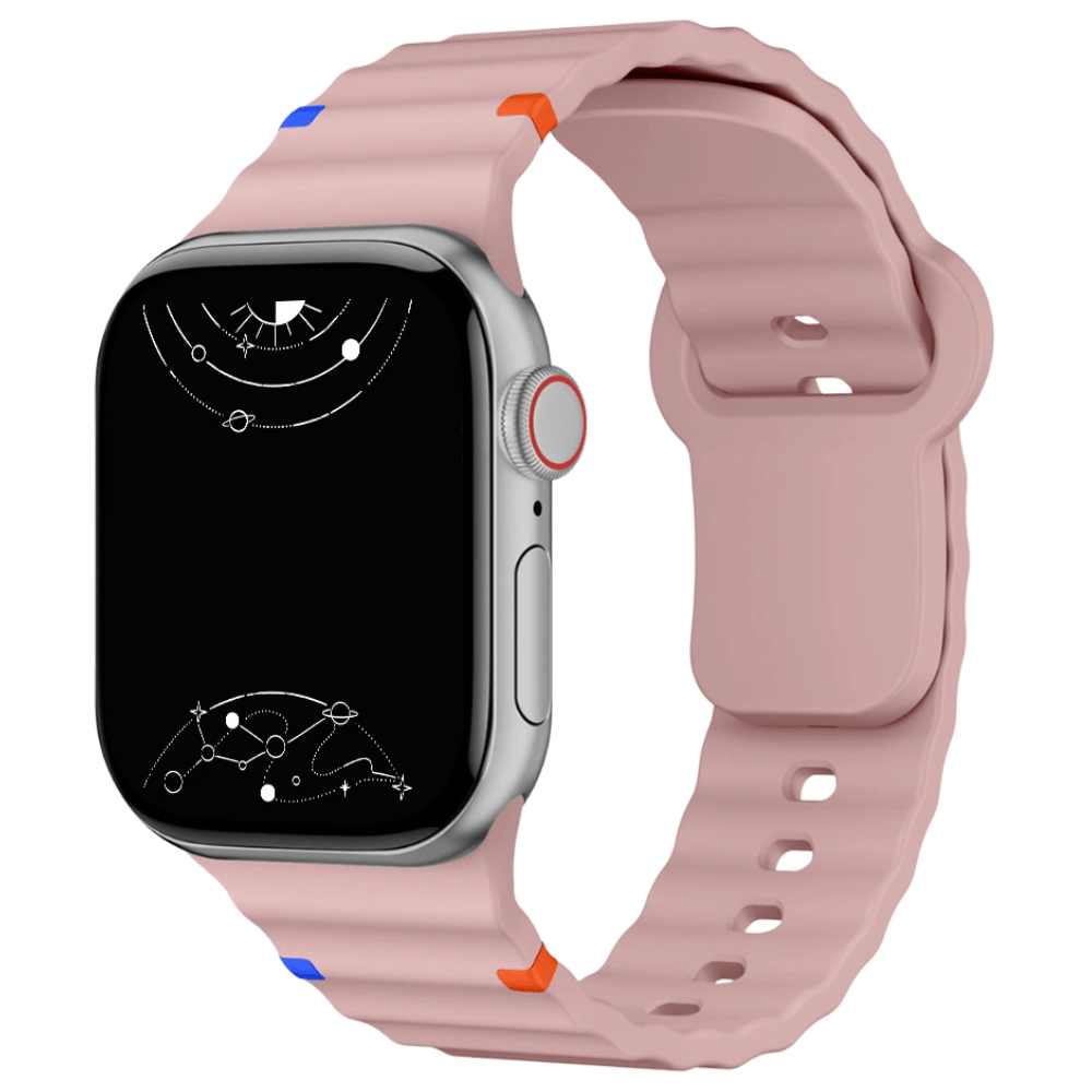 Meine Tochter benutzt dieses Armband fuer ihre Apple Watch Series 10 (42 mm). Sie mag es sehr. Es ist weich und aehnlich wie die Silikonbaender von Apple. Die Farbe ist kraeftig und es passt perfekt. Es nimmt keine Feuchtigkeit auf