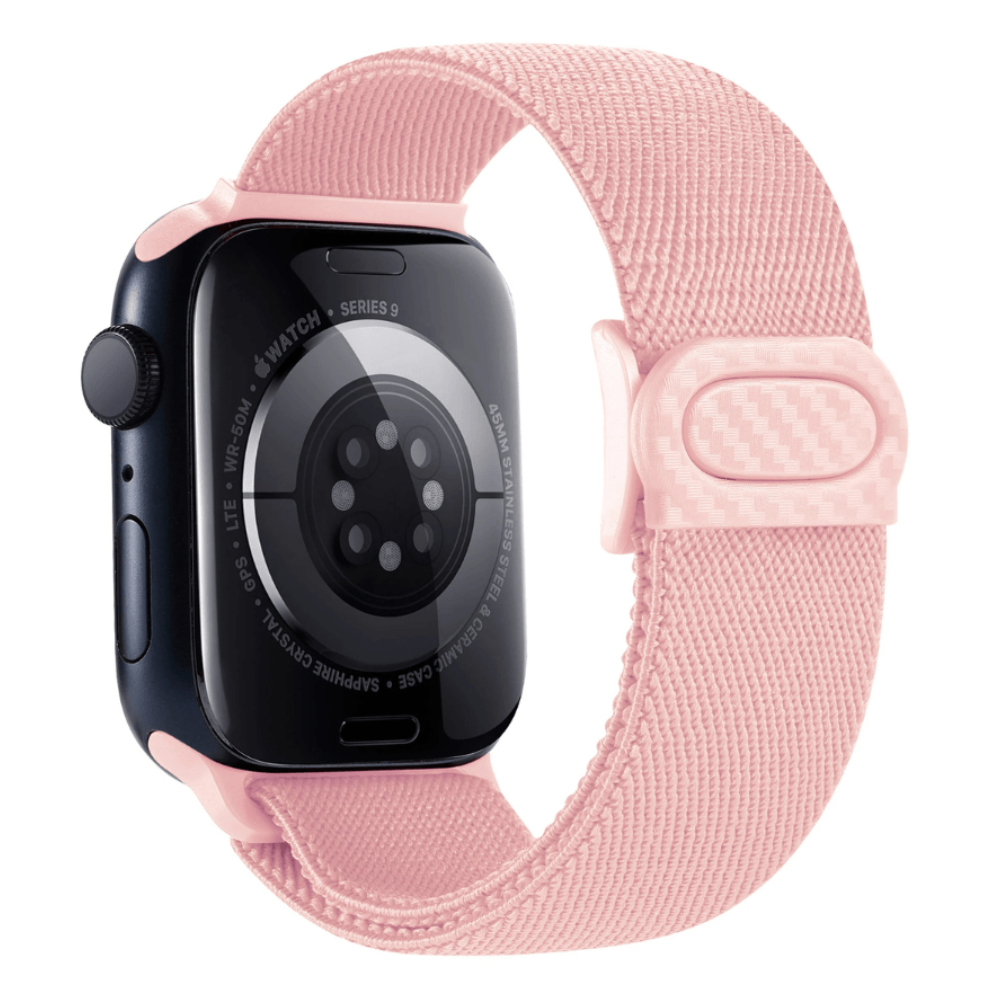 Ich ziehe diese dehnbaren Nylonbander den Plastikbandern vor, die mit der Apple Watch geliefert wurden. Sie lassen sich prazise anpassen.