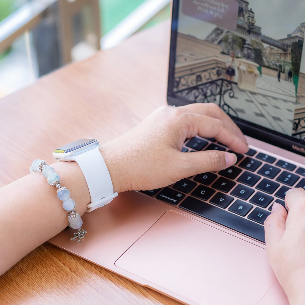 5. Einzigartiges Design: Das Océan Armband verleiht Ihrer Apple Watch einen neuen Look. Es ist in verschiedenen Farben erhältlich, darunter Beige, Schwarz, Orange, Blau, Gelb, Grün und Weiß.